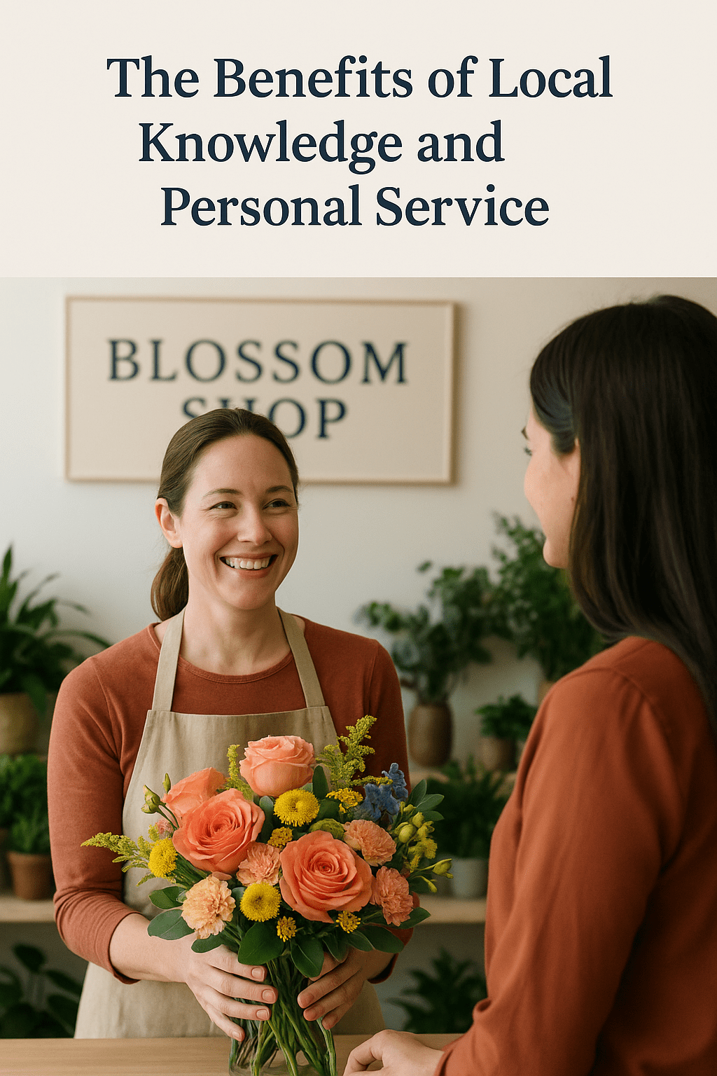 You also get personalized service. When you walk into a local florist like Blossom Shop, someone greets you by name. They remember your preferences, past orders, and even the names of your pets. That’s a level of connection you can’t get from online shopping or chain stores.