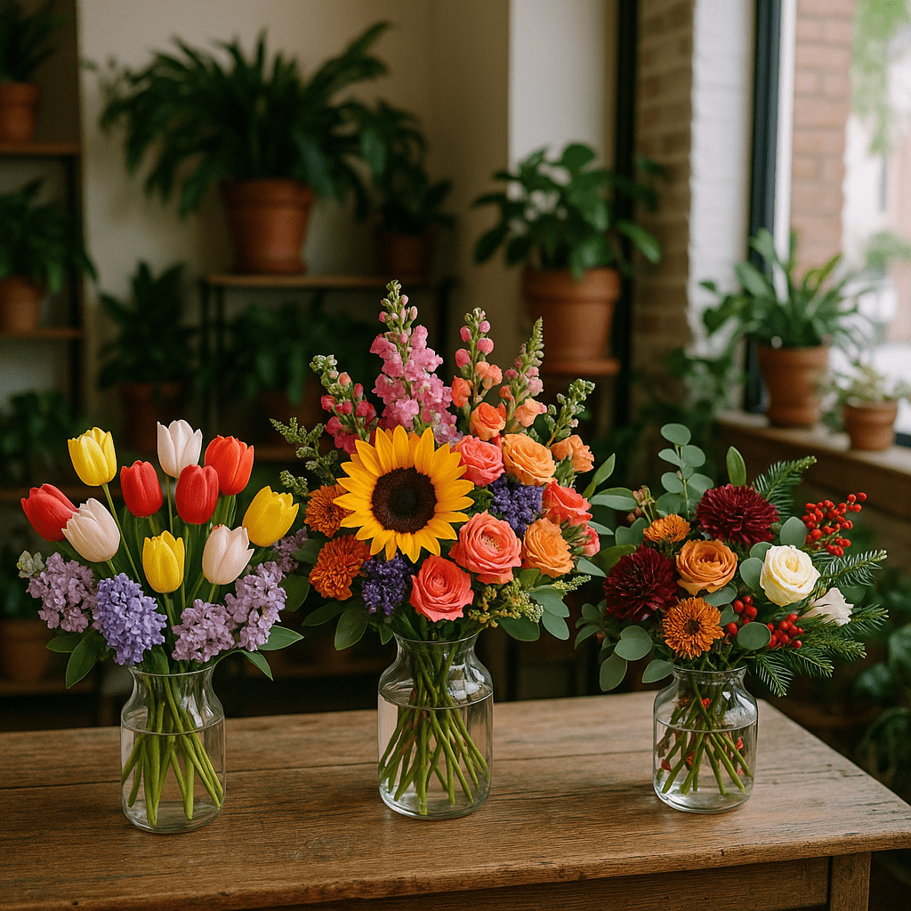 Spring? Expect tulips, daffodils, lilacs, and hyacinths. These blooms signal a fresh start and are perfect for Easter, Mother’s Day, or simply celebrating sunshine after a long winter. The shop creates arrangements that look like they were plucked right from a local garden.