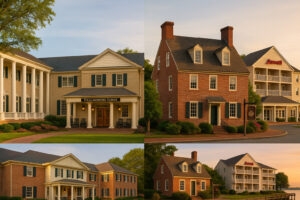 Williamsburg Inn: five-star elegance adjacent to the Historic District; expect chandeliers, golf courses, and classic southern hospitality.