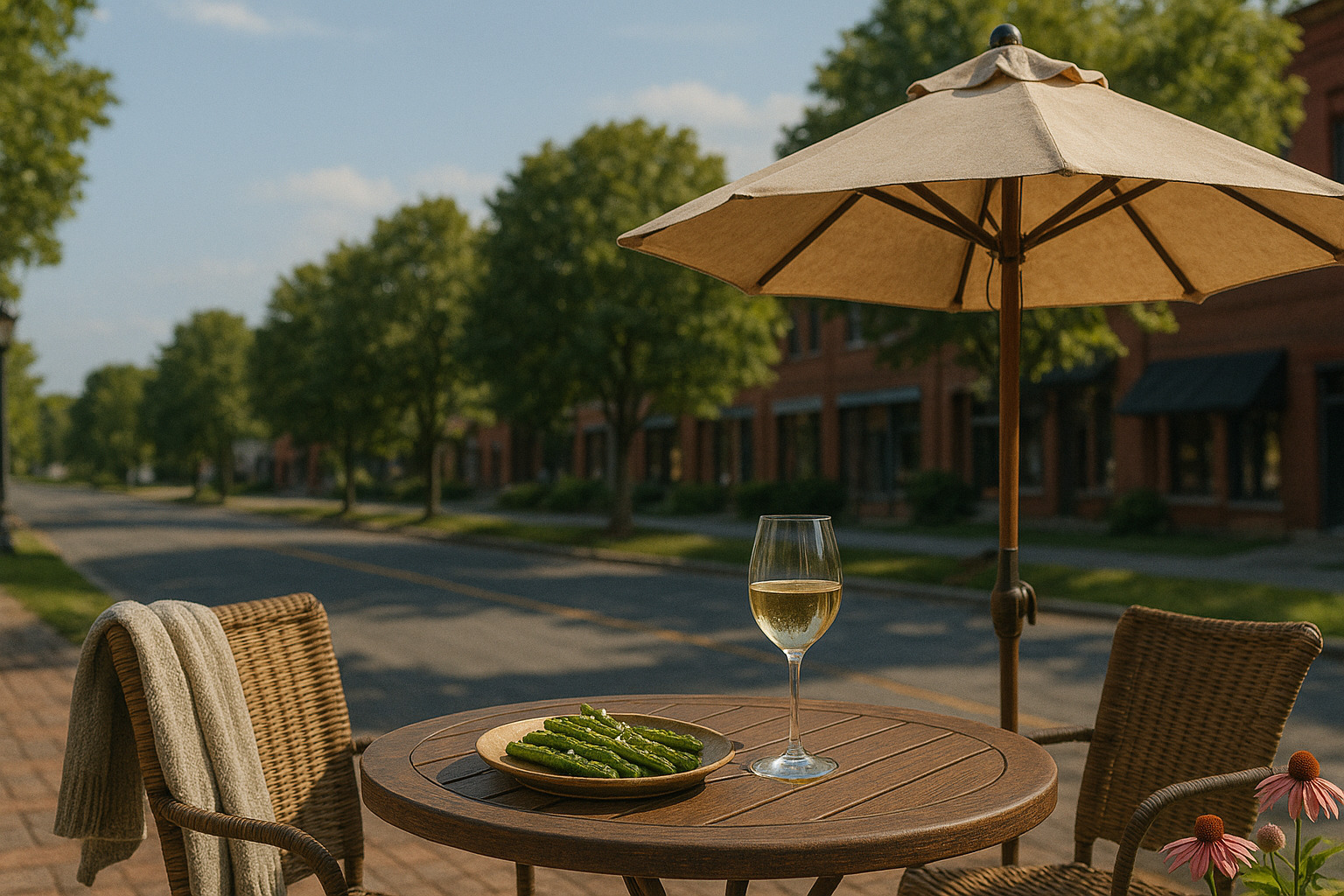 By May, patios reopen. Locals return to Pangaea Lounge, where terrace tables overlook flowering streets. A glass of chardonnay and grilled asparagus in hand, you watch the town reappear from its winter cocoon.
