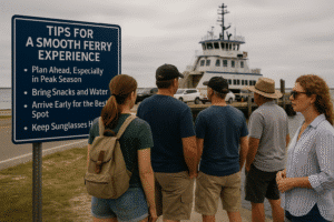 Arrive Early: For reservation-based ferries, get there at least 30 minutes before departure. For Hatteras, arrive 45–60 minutes early in peak season.