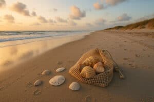 Tip: Bring a mesh bag so shells dry out as you collect them.