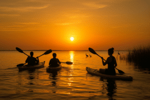 Paddling at sunset, with the sky turning gold and the water glowing, is an experience that no hotel balcony can match.