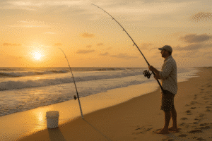 Gear Needed: Surf rods, bait buckets, and rod holders (many locals just stick PVC pipes into the sand).