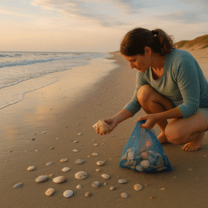 Early mornings are magical on Ocracoke’s beaches. The sand is cool, the light is soft, and the tide often leaves behind treasures.