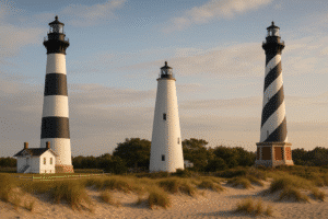 Cape Hatteras: At 210 feet, it’s the tallest brick lighthouse in the U.S. and famous for its black-and-white spiral stripes. Visitors can climb to the top for sweeping ocean views.