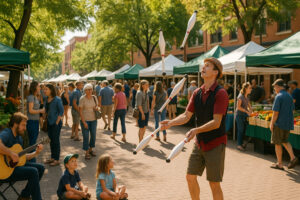 Street Performers: Jugglers or kids’ entertainers add whimsy.