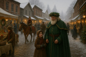 Afternoons belong to families: pony rides for children, craft booths where youngsters decorate pine-cone ornaments, and photo corners featuring Father Christmas in emerald robes. Parents linger at antique shops or watch street performers reenact “A Christmas Carol” in five-minute sketches.