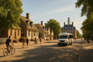 Most historic attractions sit within walking distance of each other. Duke of Gloucester Street is pedestrian-only, making it ideal for slow exploration. Bike rentals are available at Spoke + Art Provisions Co., a local favorite near Jamestown Trail.